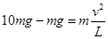 如图,杯子里盛有水,用绳子系住水杯在竖直平面内做“水流星”表演,转动半径为L,重力加速度为g,绳子能承受的最大拉力是水杯和杯内水总重力的10倍。要使绳子不断,节目获得成功,则杯子通过最高点的速度的最小值为多少?通过最低点的速度不超过多少?![]()