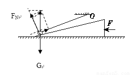如图所示,小球用细绳系住,绳的另一端固定于O点.现用水平力F缓慢推动斜面体,小球在斜面上无摩擦地滑动,细绳始终处于绷紧状态,当小球上升到接近斜面顶端时细绳接近水平,此过程中斜面对小球的支持力FN以及绳对小球的拉力FT的变化情况是( )