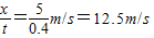 故摩托车的速度至少为12.5m/s.
