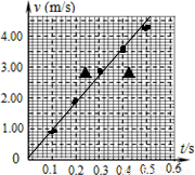 (3)某同学利用“验证机械能守恒定律”实验装置打出了一条图示纸带,每相邻两计数点间还有4个打点(图3中未标出),图中D点的速度vD=______m/s( 保留三位有效数字),该同学处理纸带后得数据如下表,请在图2坐标纸上作出其v-t图.若该同学根据图线测出的重力加速度明显小于当地实际重力加速度,试分析可能的原因______.