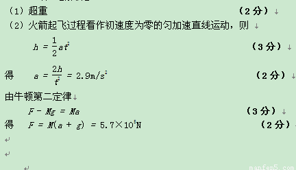 (1)火箭起飞过程,飞船中的宇航员是处于超重还是失重状态?