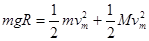 Îï¿éÔÚÔ²»¡ÃæÉÏÏ»¬¹ý³Ì£¬ÓÉϵͳ¶¯Á¿ÊغãºÍ»úеÄÜÊØºãÓÐ0=mvm£MvM ¡¢Ù
