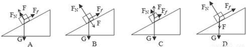 B图中FfB=Gsinθ;C图中FfC=(G-F)sinθ;D图中FfC=(G+F)sinθ,而原来都为:Gsinθ,比较得知静摩擦力增大的为D,所以A、B、C、选项错误,D选项正确.