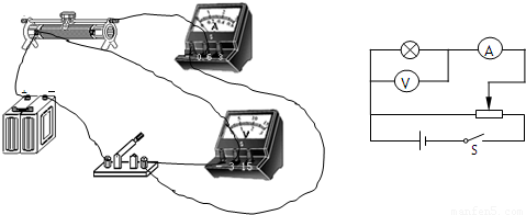 ,所以电流表量程选择0.6A的,滑动变阻器采用限流式接法,电流表采取内接.实物连线图如下图.
