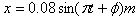 一物体沿x轴做简谐振动,振幅为8cm,频率为0.5HZ,在t=0时,位移是4cm,且向x轴负方向运动,试写出用正弦函数表示的振动方程表达式并求出t=1s时的位移。