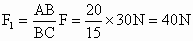 如图所示,三角形轻支架ABC的边长AB=20cm,BC=15cm.在A点通过细绳悬挂一个重30N的物体,则AB杆受拉力大小为______N,AC杆受压力大小为______N.