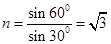 试题分析:由于EF∥AC,因此折射角为30°,而入射角为60°,根据折射定律,折射率为