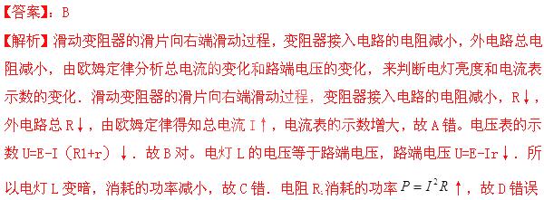 (2013江苏名校质检)如图所示的电路中,电源的电动势E和内阻r恒定不变,变阻器R1的滑片P处在如图位置时,电灯L正常发光。现将滑片P向右移动,则在该过程中