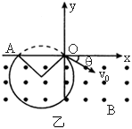 如图甲,在y<0的区域内存在匀强磁场,磁场方向垂直于xOy平面并指向纸面外,磁感应强度为B,一带正电的粒子以速度