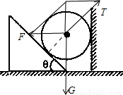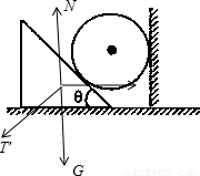 【答案】分析:对小球受力分析,可知小球的受力情况;再对三棱柱受力分析可得出三棱柱的受力情况;对整体分析可得出其对地面的压力大小.