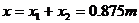 (离左边0.875m处停止运动)…(1分)