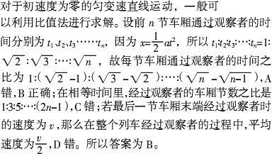 v,那么在整个列车经过观察者的过程中,平均速度为
