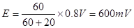 一太阳能电池板,测得它的开路电压为800mV,短路电流为40mA,若将该电池板与一阻值为60Ω的电阻器连成一闭合电路,则它的路端电压是( )