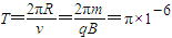 【答案】分析:根据洛伦兹力提供向心力,和牛顿第二定律可以求出粒子运动的周期;
