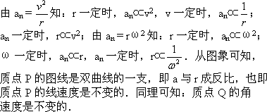 如图所示为质点P、Q做匀速圆周运动时向心加速度随半径变化的图线,表示质点P的图线是双曲线,表示质点Q的图线是过原点的一条直线.由图线可知