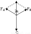 ÒÔÖØÎïºÍÉþ×ÓÕûÌåΪÑо¿¶ÔÏ󣬷ÖÎöÊÜÁ¦Çé¿ö£ºÖØÁ¦¡¢Ô²ÖùÌåA¶ÔÉþ×ÓµÄ×÷ÓÃÁ¦FA£¬Ô²ÖùÌåB¶ÔÉþ×ÓµÄ×÷ÓÃÁ¦FB£¬¸ù¾Ý¶Ô³ÆÐÔ¿ÉÖª£¬FA=FB£¬ÓÉÆ½ºâÌõ¼þ¿ÉµÃ