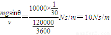 ÈçͼËùʾ£¬Ò»¸öÓëÆ½Ì¨Á¬½ÓµÄ×ã¹»³¤Ð±ÆÂÇã½Ç=kv£®ÄÇô±ÈÀýϵÊýk=______NS/m£®µ±¿¨³µÒԺ㶨¹¦ÂÊPÑØÐ±ÆÂÏòÉÏÐÐÊ»£¬´ïµ½µÄ×î´óËÙ¶È¿ÉÒÔΪ54km/h£¬Ôò¿¨³µµÄ¶î¶¨¹¦Âʹ¦ÂÊP=______W£»µ±¿¨³µ¿ªÉÏÆ½Ì¨ºó£¬¼ÌÐø±£³Ö´Ëºã¶¨¹¦ÂÊÐÐÊ»40s£¬ÖØÐÂÔÈËÙÐÐÊ»£¬Ôò¿¨³µ¿ªÉÏÆ½Ì¨ºóµ½ÔÈËÙÐÐÊ»µÄ¹ý³ÌÖп˷þ×èÁ¦Ëù×öµÄ¹¦W=______ J£®£¨g=10m/s2£©