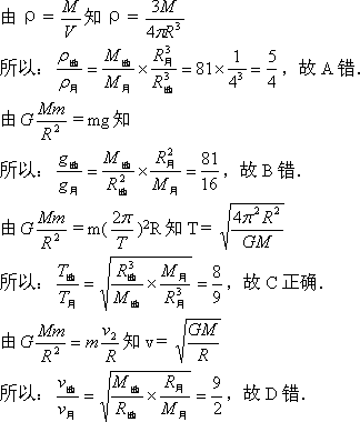 D.靠近地球表面沿圆轨道运行的航天器线速度与靠近月球表面沿圆轨道运行的航天器线速度之比约为81∶4
