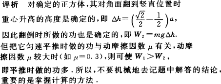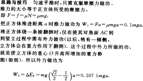 如图所示,一质量为m、边长为a的正方体与地面之间的动摩擦因数μ=0.1.为使它水平移动距离a,可以采用将它翻倒或向前匀速平推两种方法.则