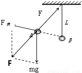 解答:解:小球受到重力mg、库仑力F库和绳的拉力FT,由平衡条件得知,mg、F库的合力与F大小相等、方向相反,作出mg、F库的合力如图,