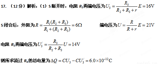 1.若开关S处于断开状态,则当其闭合后,求流过R4的总电量为多少?
