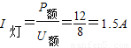 解答:解:(1)灯泡正常发光,U=U额=8V