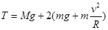如图所示,有一质量为M的大圆环,半径为R,被一轻杆固定后悬挂在O点,有两个质量为m的小环(可视为质点),同时从大环两侧的对称位置由静止滑下,两小球同时滑到底部时,速度为v,则此时大环对轻杆的拉力大小为( )