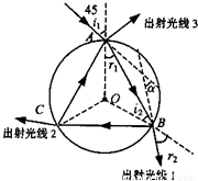 同理可推出在C和A两点有光线射出球外,所以共有三束光出射.