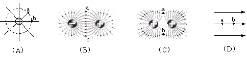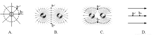 如图几种典型的电场,其中A.、b两点电场强度和电势均相等的是( )![]()