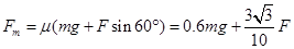 试题分析:当由推力F时,最大静摩擦力为