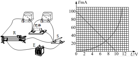 在研究电路元件的伏安特性时,得到如图所示的伏安特性曲线,已知电压表V(量程为15V,内阻约为150kΩ),电流表A(量程为150mA,内阻约为10Ω).