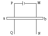在图中,PQ,MN为光滑金属导轨,ab为金属棒,与电源组成闭合电路,该装置在竖直平面内。为使ab静止,可将该装置放在匀强磁场中,其磁场方向应是
