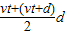 得x=vt+d=