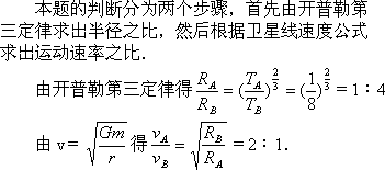 两颗人造卫星A、B绕地球做圆周运动的周期之比TA∶TB=1∶8,则轨道半径之比和运动速率之比分别是