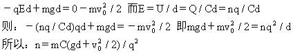 平行板电容器电容为C,原不带电,板间距为d,A板接地,现有质量为m,带电量为+q的液滴以初速度v0由A板的上孔落到B板,求落在B板上的液滴的滴数.