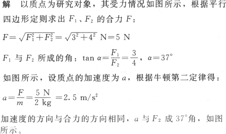 质量为2 kg的质点同时受到相互垂直的两个力F1、F2的作用,如图所示,其中F1=3 N,F2=4 N,求质点的加速度大小和方向.
