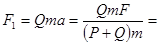 试题分析:以整体为研究对象,设每个环的质量为m,由牛顿第二定律可知F=(P+Q)ma,再以左边Q个环为研究对象,根据整体的加速度等于各部分加速度得![]()