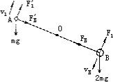 ÈçͼËùʾ£¬ÖÊÁ¿·Ö±ðΪmºÍ2 mµÄÁ½¸öСÇòAºÍB£¬ÖмäÓÃÇáÖʸËÏàÁ¬£¬Ôڸ˵ÄÖеãO´¦ÓÐÒ»¹Ì¶¨×ª¶¯Öᣬ°Ñ¸ËÖÃÓÚˮƽλÖúóÊÍ·Å£¬ÔÚBÇò˳ʱÕë°Ú¶¯µ½×îµÍλÖõĹý³ÌÖÐ