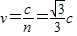 【答案】分析:根据几何关系求出光在AC面上的入射角,再根据折射定律求出棱镜的折射率,结合v=