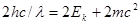 由质能方程,对应的能量为:ΔE=2mC2 (2分)