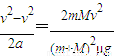 D¡¢¸ù¾Ý¶¯Á¿¶¨ÀíµÃ£¬-ft=Mv-Mv£¬f=¦Ìmg£¬½âµÃ£ºt=