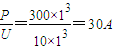 导线上损失的功率为P=I2R=302×10=9000W;
