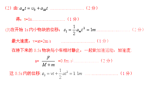 解:(1)物块的加速度:am=μg=2 m/s2……………………(2分)