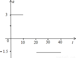 解答:解:(1)在速度-时间图象中切线表示加速度,所以0~10s内的加速度:a=
