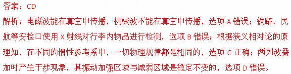 D.两列波叠加时产生干涉现象,其振动加强区域与减弱区域是稳定不变的
