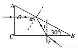 ,∠B=30°,一束单色光垂直于AC面射向棱镜,人射点为O,求出光射出棱镜时的折射角。(不考虑BC面对光线的反射)