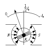 线圈在转动过程中,由于将螺旋弹簧扭紧,同时受到螺旋弹簧的阻碍力矩(M′=kθ)的作用,当两力矩平衡时线圈静止,根据力矩平衡条件有 NBIS=kθ, θ= 式中k为螺旋弹簧的扭转系数,单位是Nm/rad. 因为线圈的偏转角θ与电流I成正比,所以电流表刻度均匀. 电流表的灵敏度可表示为 c= 由此式可知,除了尽可能减小摩擦阻力之外,还可以通过增加N、B、S和减小k来提高电流表的灵敏度. |