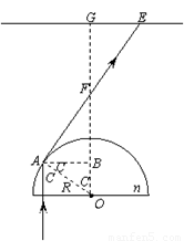 【解析】①如图,紫光刚要发生全反射时的临界光线射在屏幕S上的点E,E点到亮区中心G的距离r就是所求最大半径.设紫光临界角为C,由全反射的知识:sinC=1/n (2分)