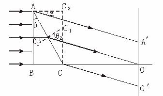 θ2为AC面上入射角和折射角,根据折