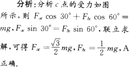 用三根轻绳将质量为m的物块悬挂在空中,如图所示,已知绳ac和bc与竖直方向的夹角分别为30°和60°,则ac和bc绳中的拉力分别为